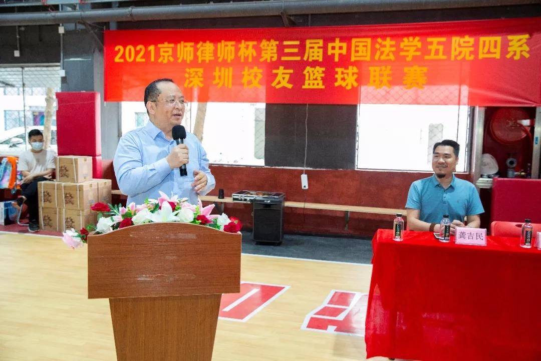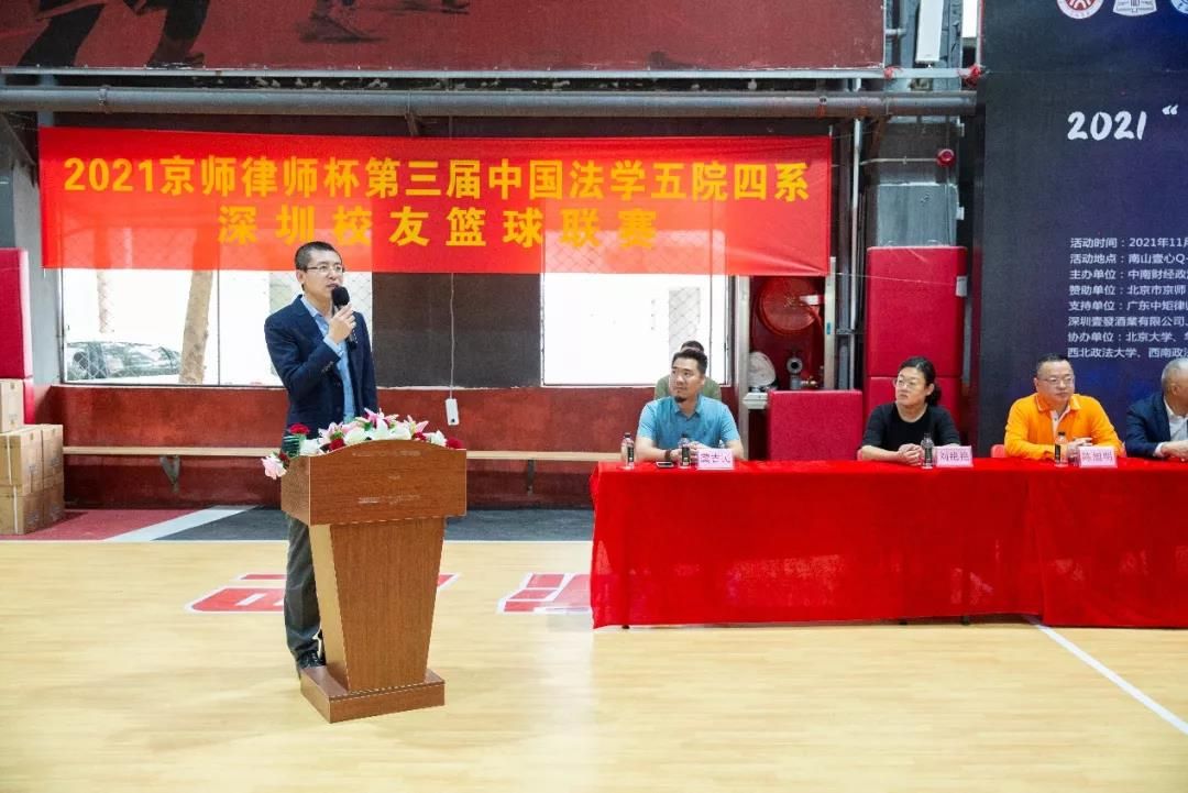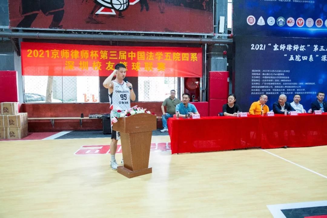 隨后,黃遠(yuǎn)兵先生致開(kāi)幕詞,熱情親切問(wèn)候了到場(chǎng)的嘉賓和各隊(duì)參賽隊(duì)員,感謝五院四系深圳校友的熱烈參與,倡導(dǎo)法律人通過(guò)運(yùn)動(dòng)努力尋找人生的快樂(lè),特別了鳴謝籃球聯(lián)賽的倡議者和推動(dòng)者蔣溪林先生。