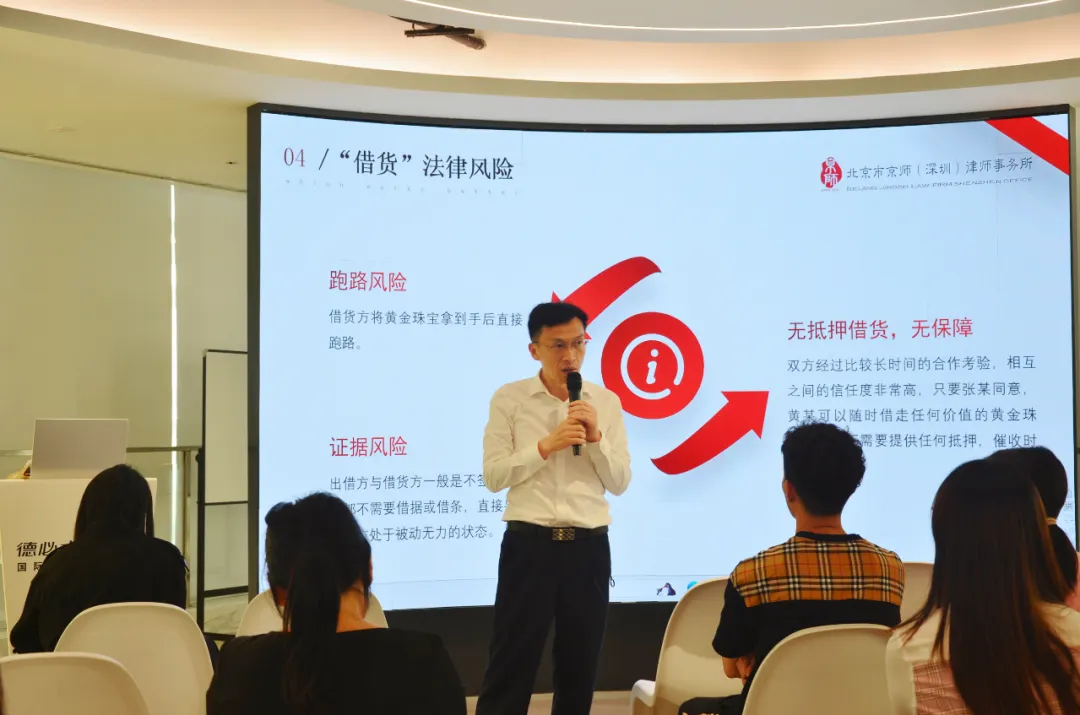 2024年4月25日,水貝黃金交易中心、深圳市市場監(jiān)督管理局羅湖監(jiān)管局、深圳市水貝珠寶集團(tuán)有限公司、北京市京師(深圳)律師事務(wù)所珠寶行業(yè)法律事務(wù)部于羅湖區(qū)布心路3008號IBC環(huán)球商務(wù)中心A座6樓德必水貝WE空中會客廳舉辦珠寶系列法律講座。