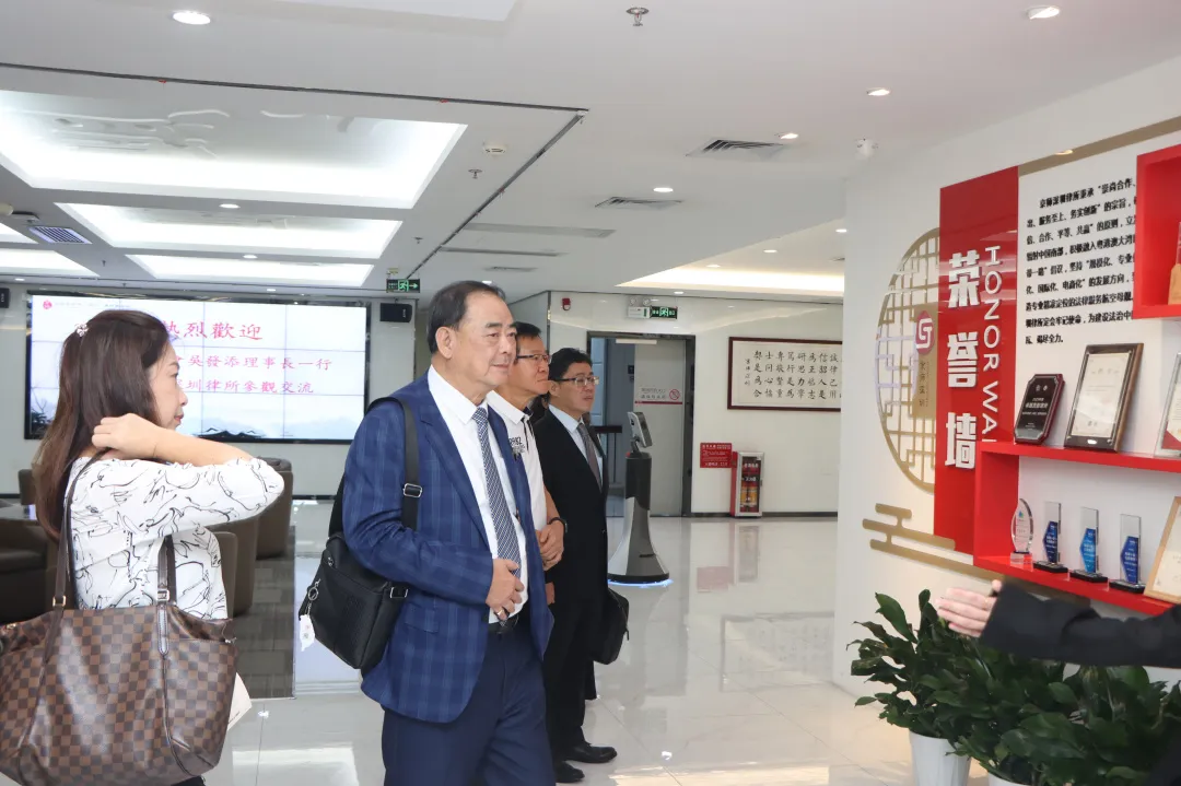會前,臺北市商業(yè)會理事長一行參觀了京師深圳律所黨建文化長廊、榮譽(yù)墻、模擬法庭、圖書角等特色區(qū)域,感受了律所專業(yè)實(shí)力和文化氛圍。