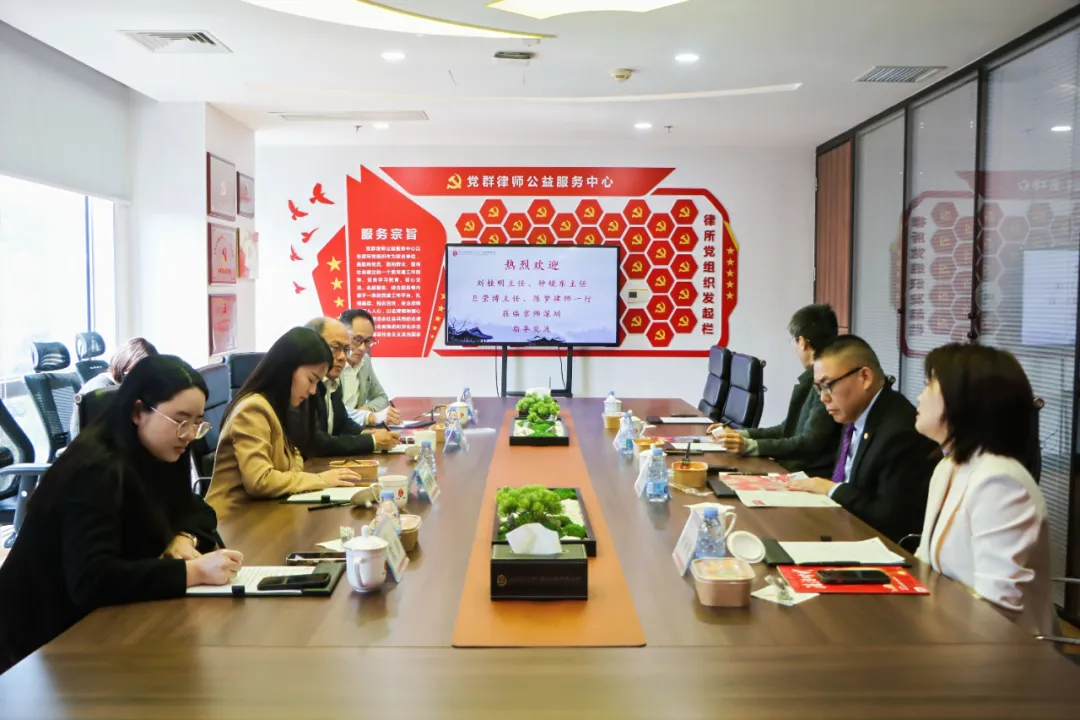 2025年2月20日上午,《法治時(shí)代》雜志專家委員會副主任劉桂明、《法治時(shí)代》深圳運(yùn)營中心主任鐘鏡東、北京策略(深圳)律師事務(wù)所執(zhí)行主任巨瑩博、北京策略(深圳)律師事務(wù)所主任助理陳夢到訪京師深圳律所參觀交流。京師深圳律所聯(lián)合創(chuàng)始人、仲裁業(yè)務(wù)發(fā)展中心主任賀樹奎,京師深圳律所聯(lián)合創(chuàng)始人、執(zhí)行主任陳修,京師深圳律所執(zhí)行副主任徐妍妮熱烈歡迎。雙方于京師深圳律所九樓黨建室落座,圍繞律所管理、品牌建設(shè)及行業(yè)發(fā)展趨勢展開座談。