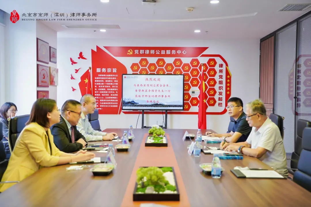 2025年8月28日上午,馬來西亞深圳總商會拿督斯里李錦賢總會長,馬來西亞深圳總商會會長特別助理黃利純到訪京師深圳律所座談交流。京師深圳律所聯(lián)合創(chuàng)始人、決策委輪值主任賀樹奎,京師深圳律所聯(lián)合創(chuàng)始人、基金證券法律服務(wù)中心主任王喆,京師深圳律所常務(wù)執(zhí)行副主任、國際業(yè)務(wù)中心主任王昉熱烈歡迎。雙方圍繞企業(yè)跨境投資法律服務(wù)、商會與律所合作機制等議題展開深入交流。
