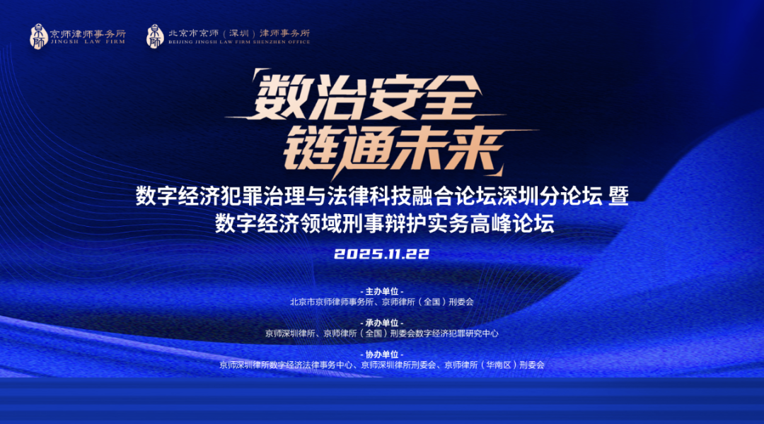 深圳,作為中國(guó)的創(chuàng)新高地,這里既是數(shù)字經(jīng)濟(jì)的浪潮前沿所在,也是法治文明熠熠生輝的熱土。2025年11月22日,“數(shù)治安全·鏈通未來(lái)”數(shù)字經(jīng)濟(jì)犯罪治理與法律科技融合論壇之深圳分論壇暨數(shù)字經(jīng)濟(jì)領(lǐng)域刑事辯護(hù)實(shí)務(wù)高峰論壇在京師深圳律師事務(wù)所成功舉辦。本次論壇由北京市京師律師事務(wù)所、京師律所(全國(guó))刑委會(huì)聯(lián)合主辦,京師深圳律所、京師律所(全國(guó))刑委會(huì)數(shù)字經(jīng)濟(jì)犯罪研究中心合力承辦,并得到京師深圳律所數(shù)字經(jīng)濟(jì)法律事務(wù)中心、京師深圳律所刑委會(huì)、京師律所(華南區(qū))刑委會(huì)的協(xié)辦支持。