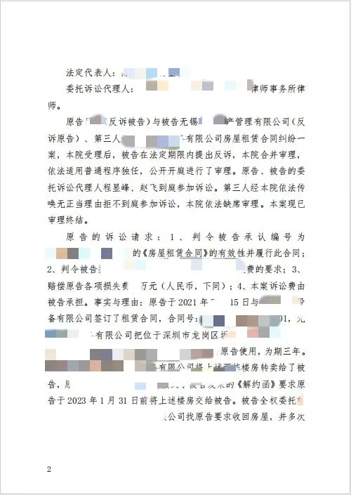 承租人與我方當事人于2021年簽訂了一份《租賃合同》,約定我方當事人將其位于深圳的房屋出租給原告。合同中詳細規(guī)定了租金、租期、押金以及雙方的權利義務等條款。然而,在合同履行過程中,雙方因租金、租期等問題產(chǎn)生糾紛,承租人遂向深圳市龍崗區(qū)人民法院提起訴訟。