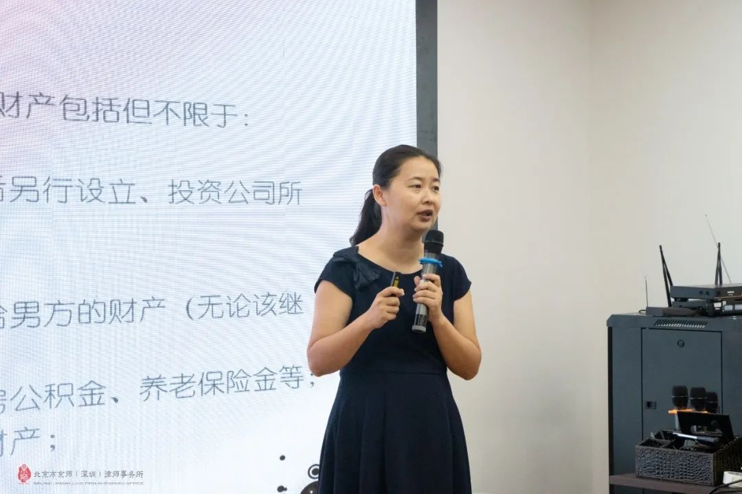 講座伊始,康雪崧律師分享了幾個(gè)有趣的婚姻家事案例,引起了現(xiàn)場(chǎng)律師的興趣??德蓭煆淖陨韴?zhí)業(yè)經(jīng)歷開始講述,以專業(yè)角度深刻解讀家事類協(xié)議擬定的技巧。她從婚前協(xié)議、婚內(nèi)協(xié)議、離婚協(xié)議三個(gè)方面展開,詳細(xì)地為現(xiàn)場(chǎng)律師講解了各類家事協(xié)議擬定的注意事項(xiàng),同時(shí)也為大家提出了許多寶貴的建議??德蓭熖岢?,為了保障家事類協(xié)議的合法合規(guī),家事類協(xié)議的擬定一定要采用書面方式,不違背當(dāng)事人的真實(shí)意愿。