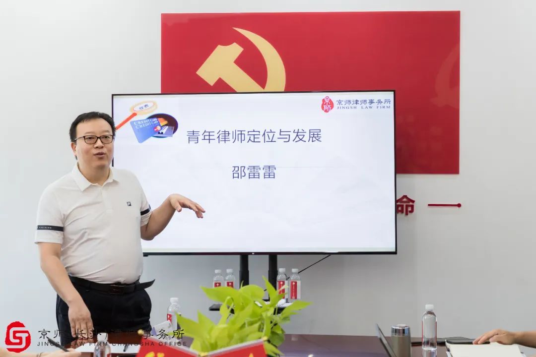 為幫助青年律師提升執(zhí)業(yè)技能,以“傳、幫、帶”的方式促進(jìn)律師綜合素質(zhì)的提高,2022年7月20日,京師律所高級合伙人、京師深圳律所聯(lián)合創(chuàng)始人、律所主任邵雷雷律師為北京市京師(長沙)律師事務(wù)所(以下簡稱“京師長沙分所”)開展“青年律師定位與發(fā)展”主題講課。