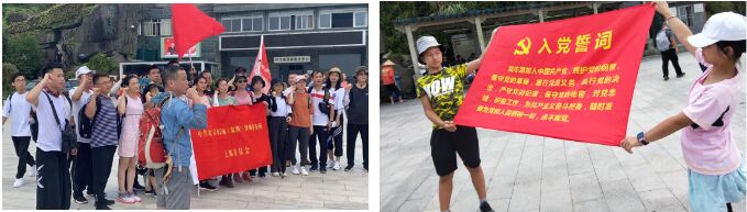 經(jīng)過了短暫休息,大家按照計(jì)劃于14:00動(dòng)身回到起點(diǎn)大平臺,開展“重溫入黨誓詞”儀式。在莊嚴(yán)神圣的黨旗下,全體黨員帶領(lǐng)入黨積極分子舉起了右手,重溫入黨誓詞,向黨旗宣誓。鏗鏘的誓詞,堅(jiān)定的承諾,讓每一位黨員和入黨積極分子更加堅(jiān)定執(zhí)業(yè)為民的信念。