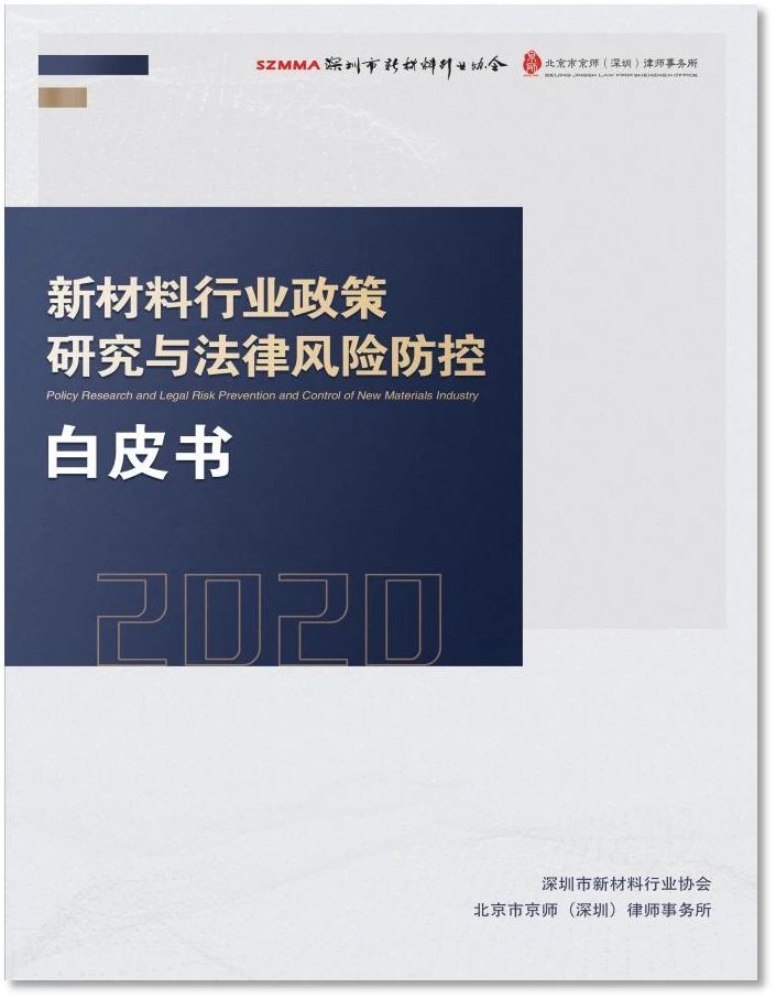 2021年1月21日下午,由深圳市新材料行業(yè)協(xié)會主辦的“深圳市新材料產業(yè)最新政策解讀暨2021年第一次會長工作會議”在南山區(qū)清華信息港隆重舉行。本次活動上,京師深圳聯(lián)合深圳市新材料行業(yè)協(xié)會重磅發(fā)布《新材料行業(yè)政策研究與法律風險防控白皮書》(下稱《白皮書》),受疫情影響,本次活動由線上線下同時進行。