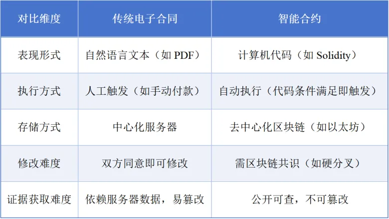 本文作者:王喆、廖杰 一 智能合約的定義 “智能合約”一詞最早由計算機科學家尼克?薩博(Nick Szabo)于1994年提出,其最初定義為“一套以數(shù)字形式定義的承諾,包括合約參與方可以在上面執(zhí)行這些承諾的協(xié)議”。目前廣泛認可的智能合約定義為“部署在區(qū)塊鏈上的、由事件驅(qū)動的、具備自動執(zhí)行功能的計算機程序,其核心功能是將合約當事人的權(quán)利義務(wù)編碼為代碼,當預(yù)設(shè)條件(如時間、交易金額、外部數(shù)據(jù))滿足時,自動觸發(fā)相應(yīng)的履約行為(如轉(zhuǎn)賬、資產(chǎn)確權(quán))”。該定義明確了智能合約的技術(shù)載體(區(qū)塊鏈)、觸發(fā)機制(事件驅(qū)動)與核心功能(自動執(zhí)行)。智能合約具有三個核心特征:其一,去中心化存儲,合約代碼與交易數(shù)據(jù)存儲于區(qū)塊鏈節(jié)點,無單一控制方;其二,不可篡改性,合約部署后除非通過共識機制(如硬分叉),否則無法修改;其三,透明可追溯,所有合約交互記錄均公開可查,確保交易公信力。從法律視角來看,智能合約通常界定為“以區(qū)塊鏈為技術(shù)載體,以代碼為表現(xiàn)形式,約定當事人權(quán)利義務(wù),并具備自動執(zhí)行功能的電子合同”。 二 智能合約的法律屬性 智能合約的法律屬性存在諸多爭議,核心焦點集中在“是否屬于獨立合同類型”“與傳統(tǒng)電子合同的異同”“代碼條款的法律地位”三個方面: (一)是否屬于獨立合同類型 部分人認為,智能合約的“自動執(zhí)行”“去中心化”特性與傳統(tǒng)合同存在本質(zhì)差異,應(yīng)成為獨立的合同類型。智能合約無需第三方中介即可履行,打破了傳統(tǒng)合同對“信任機制”的依賴,其法律屬性應(yīng)獨立于電子合同,需專門立法規(guī)制。 我國主流觀點認為,智能合約仍屬于電子合同的范疇,無需創(chuàng)設(shè)新的合同類型?!睹穹ǖ洹返?69條明確“以電子數(shù)據(jù)交換、電子郵件等方式能夠有形地表現(xiàn)所載內(nèi)容,并可以隨時調(diào)取查用的數(shù)據(jù)電文,視為書面形式”,智能合約的代碼本質(zhì)上是“有形表現(xiàn)所載內(nèi)容的數(shù)據(jù)電文”,符合電子合同的構(gòu)成要件。 (二)與傳統(tǒng)電子合同的異同 智能合約與傳統(tǒng)電子合同的共性在于:均以數(shù)據(jù)電文為表現(xiàn)形式、均需符合合同的成立要件(要約、承諾、意思表示一致)、均受《民法典》合同編規(guī)制。但二者存在顯著差異,具體如下表所示: (三)代碼條款的法律地位 “代碼即條款”是智能合約的核心特征,但代碼條款與自然語言條款的沖突如何解決,成為法律屬性認定的關(guān)鍵,當智能合約同時存在代碼條款與自然語言條款時,可能出現(xiàn)“代碼執(zhí)行結(jié)果與自然語言約定不一致”的情況(如代碼漏洞導致多轉(zhuǎn)賬),此時需明確二者的優(yōu)先效力。對此存在兩種觀點:其一,“代碼優(yōu)先原則”,認為代碼是智能合約的唯一有效條款,自然語言僅為解釋說明,因代碼的執(zhí)行結(jié)果具有確定性,符合當事人的真實意思表示;其二,“自然語言優(yōu)先原則”,認為代碼是實現(xiàn)自然語言條款的工具,若代碼與自然語言沖突,應(yīng)以自然語言為準,因代碼可能存在漏洞,并非當事人真實意思的體現(xiàn)。 筆者更傾向采用“區(qū)分原則”:若當事人明確約定“代碼條款為唯一有效條款”,則優(yōu)先適用代碼;若未明確約定,且代碼漏洞導致結(jié)果與自然語言沖突,則應(yīng)以自然語言為準,同時追究代碼開發(fā)者的過錯責任。該原則既尊重當事人的意思自治,又能防范代碼漏洞引發(fā)的不公,符合《民法典》“公平原則”與“誠信原則”的要求。 三 智能合約的技術(shù)架構(gòu) 智能合約并非孤立的計算機程序,而是依賴區(qū)塊鏈技術(shù)的多層級架構(gòu)體系。根據(jù)技術(shù)功能的不同,可將其分為區(qū)塊鏈底層、合約代碼層、應(yīng)用層三個層級,各層級的技術(shù)構(gòu)成與功能如下: (一)區(qū)塊鏈底層 區(qū)塊鏈底層是智能合約的技術(shù)基礎(chǔ),負責提供去中心化存儲、共識機制、加密算法等核心支撐。區(qū)塊鏈底層的核心技術(shù)組件分為四類:(1)分布式賬本:所有節(jié)點共同維護一份賬本,記錄智能合約的部署信息、交易記錄與執(zhí)行結(jié)果,確保數(shù)據(jù)透明可追溯;(2)共識機制:通過算法(如工作量證明PoW、權(quán)益證明PoS)實現(xiàn)節(jié)點間的信任達成,決定智能合約的執(zhí)行與賬本的更新(如以太坊從PoW轉(zhuǎn)向PoS后,共識效率大幅提升);(3)加密算法:采用非對稱加密(如RSA、ECDSA)確保合約主體的身份認證與交易安全,通過哈希算法(如SHA-256)確保數(shù)據(jù)不可篡改;(4)P2P網(wǎng)絡(luò):節(jié)點間通過點對點網(wǎng)絡(luò)直接通信,無需中心化服務(wù)器,確保智能合約的去中心化部署與執(zhí)行。 (二)合約代碼層 合約代碼層是智能合約的核心,負責將當事人的權(quán)利義務(wù)編碼為可執(zhí)行的計算機程序。目前主流的智能合約開發(fā)語言包括Solidity(以太坊平臺)、Vyper(以太坊平臺)、Chain code(Hyperledger Fabric平臺)等,其中Solidity因“圖靈完備”“語法簡潔”成為最常用的語言。合約代碼層的核心組件包括:(1)合約接口:定義智能合約與外部交互的方式(如函數(shù)調(diào)用