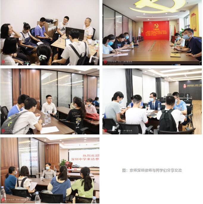 2020年7月28日,深圳中學(xué)高一級學(xué)生到京師深圳開展校外職業(yè)體驗課,京師深圳聯(lián)合創(chuàng)始人、首席合伙人陳旭明,京師深圳行政辦公室總監(jiān)江可欣,人資一部主管呂佩蓉、滕昊等出席了課程。課程邀請了程志律師、涂重信律師、李信律師、張劍彪律師、王賢瑋律師作為分享嘉賓,向到訪學(xué)生分享律師執(zhí)業(yè)經(jīng)歷與趣事。