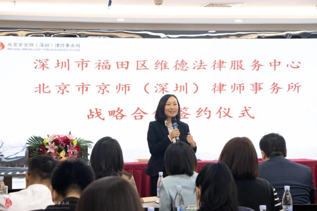 隨后,京師總部創(chuàng)始合伙人、京師深圳聯(lián)合創(chuàng)始人、主任邵雷雷表示,感謝各位律師對公益法律服務(wù)做出的貢獻(xiàn),各位律師積極參與公益普法行動,包括青少年普法以及提供法律援助等,在充實(shí)自身執(zhí)業(yè)生涯的同時(shí),助力了法治建設(shè),展現(xiàn)了京師擔(dān)當(dāng)。邵雷雷主任還表示,京師深圳未來將充分發(fā)揮與維德中心戰(zhàn)略合作的積極作用,進(jìn)一步助力完善公益法律服務(wù),盡京師深圳的力量做更多的公益法律事業(yè)。