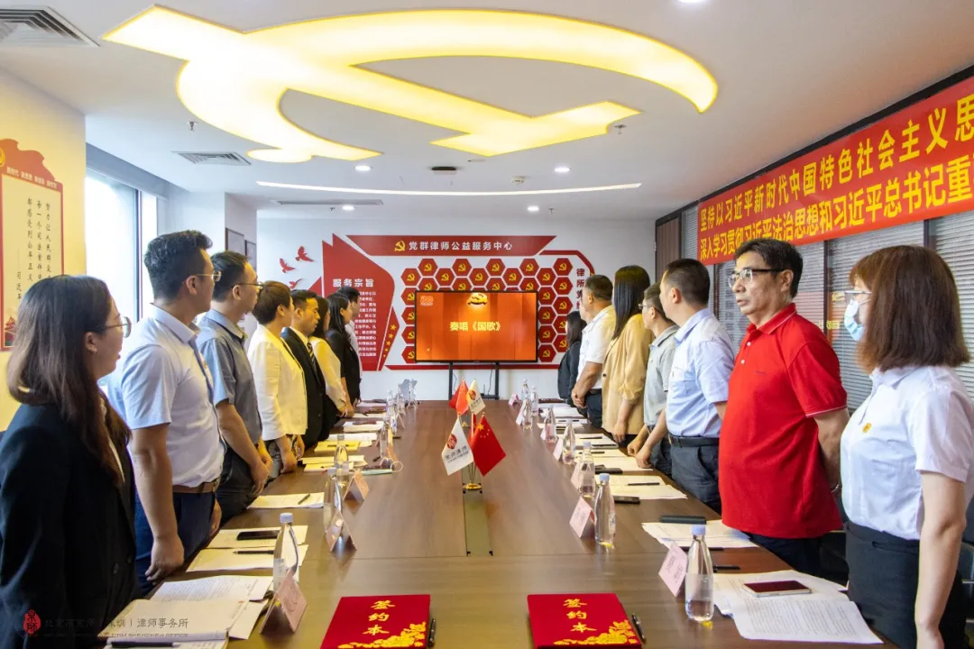 會(huì)議伊始,一曲慷慨激昂的國(guó)歌振奮人心,激起了與會(huì)人員滿滿的民族自豪感。會(huì)議通過播放《喜迎建黨100周年宣傳片》、《京師黨建宣傳片》,介紹了獨(dú)具特色的黨建模式,通過黨建強(qiáng)化黨員理想信念,筑牢基層黨建堡壘,以黨建推動(dòng)律所、律師發(fā)展。