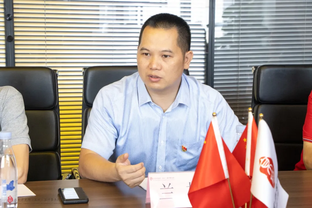 福田區(qū)民族團(tuán)結(jié)發(fā)展促進(jìn)會(huì)黨支部書記蘭林對(duì)福田區(qū)民族團(tuán)結(jié)發(fā)展促進(jìn)會(huì)黨支部的工作進(jìn)行詳細(xì)介紹,他表示京師深圳律所的黨建架構(gòu)與福田區(qū)民族團(tuán)結(jié)發(fā)展促進(jìn)會(huì)的黨建架構(gòu)具有一致性,福田區(qū)民族團(tuán)結(jié)發(fā)展促進(jìn)會(huì)黨支部對(duì)黨建活動(dòng)也是高度重視,通過黨建深入社區(qū),聯(lián)系群眾,也注重發(fā)展民族特色。