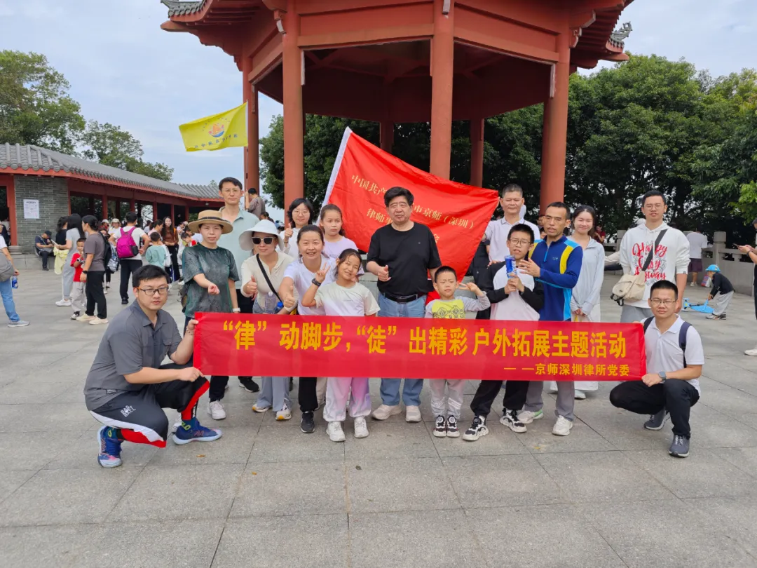為全面貫徹落實(shí)黨的二十屆三中全會(huì)精神,加強(qiáng)黨建引領(lǐng),扎實(shí)推進(jìn)黨員密切聯(lián)系群眾工作,更好地促進(jìn)京師律師之間的交流,加強(qiáng)律師身體素質(zhì)鍛煉,2024年11月9日,京師深圳律所黨委組織律師赴深圳市塘朗山公園開展以“‘律’動(dòng)腳步,‘徒’出精彩”為主題的戶外拓展活動(dòng),通過黨建引領(lǐng)聚合力,進(jìn)一步增進(jìn)京師律師的向心力、凝聚力。